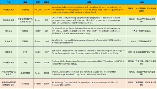 此外,EVO医药自主研发的血小板生成素受体激动剂(TPO-RA)海曲泊帕在肿瘤治疗所致血小板减少领域、新一代长效G-CSF产品硫培非格司亭在肿瘤治疗所致中性粒细胞减少症领域各入选1项壁报展示。